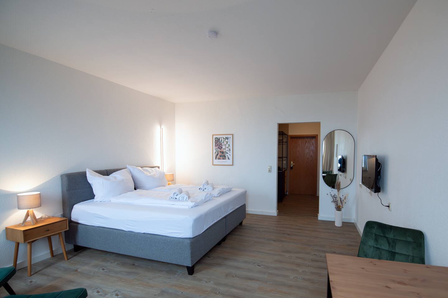 Check-In & Check-Out : Der Check-In ist ab 16:00 Uhr möglich und erfolgt ganz unkompliziert und selbstständig. Drei Tage vor Ihrer Anreise erhalten Sie per Nachricht einen 6-stelligen Code, dieser ermöglicht Ihnen den Zugang zur Haupteingangstür sowie Ihrem Apartment. Der Check-out ist ebenfalls selbstständig bis spätestens 10:00 Uhr durchzuführen. Haustiere : Hunde sind willkommene Gäste und können gegen eine Reinigungspauschale von 30€ mitgebracht werden. Bitte geben Sie diese bei der Buchung unbedingt mit an. Fernsehen & Streaming in Ihrer Unterkunft : In all unseren Apartments steht Ihnen ein Fernseher mit einem Amazon Fire TV Stick zur Verfügung. Der Fire TV Stick ist mit dem Internet verbunden, sodass Sie bequem Ihre eigenen Streaming-Dienste nutzen können. Melden Sie sich einfach mit Ihren persönlichen Zugangsdaten bei den gewünschten Apps (z. B. Netflix, Prime Video, YouTube) an und genießen Sie Ihr individuelles TV-Programm. Bitte beachten Sie, dass wir selbst keine Konten oder Abonnements bereitstellen. Vergessen Sie daher nicht, sich vor Ihrer Abreise wieder aus Ihren Accounts abzumelden. Fahrradraum : Für unsere Gäste bieten wir eine kostenlose Unterstellmöglichkeit. Unser Fahrradraum befindet sich im Erdgeschoss (direkt nach dem Hauseingang auf der linken Seite) und steht allen Gästen zur Verfügung, um ihre Räder trocken abzustellen. Bitte beachten Sie, dass der Raum für alle unsere Gäste im Haus zugänglich ist und nicht extra gesichert oder überwacht wird. Wir übernehmen keine Haftung für abgestellte Fahrräder – diese sind vom Gast selbst entsprechend zu sichern. Rauchen Verboten : Rauchen ist im gesamten Gebäude nicht gestattet. Bei Verstoß behalten wir uns vor eine Sonderreinigungsgebühr zu erheben. Wir wünschen Ihnen eine angenehme Anreise und freuen uns auf Ihren Besuch!